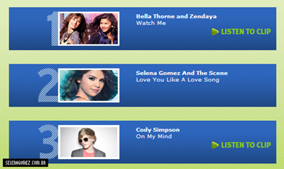 Vamos colocá-la em primeiro lugar? Então clique aqui, selecione Selena Gomez & The Scene, ”Love you like a love song”, e em seguida preencha os campos (nome, idade e estado).